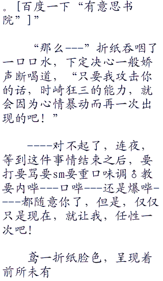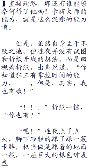 -----但是话说回来,此时连夜面对的毕竟是鸢一折纸,这个自己已经结识了很长一段时间的少女,难道连夜要伸出手,挑衅道,‘你,已经死了。’之类的话语?那怎么可能,连夜并没有要和【Angel(天使)】鸢一折纸开战的打算。