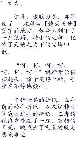 折纸不知道该如何用语言表达这种感觉,愤怒?杀意?憎恶?这样的词语根本无法确切说明折纸心中所充斥的狂气。