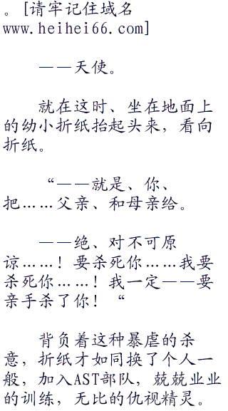 父母两人都安然无恙,没有因为【Efreet(炎魔)】牵连的火焰而死去。折纸从心底感到喜悦并松了口气。但这份喜悦,并没能持续多久。
