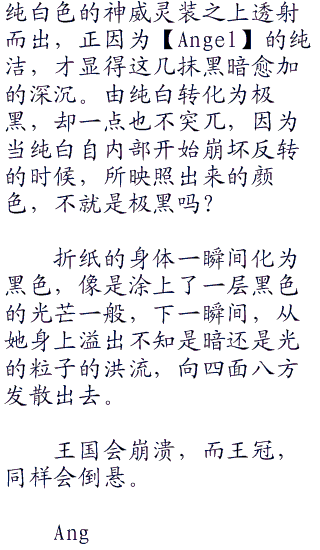 在空中,找到了一个身影,一抹纯白色的绝灭天使。