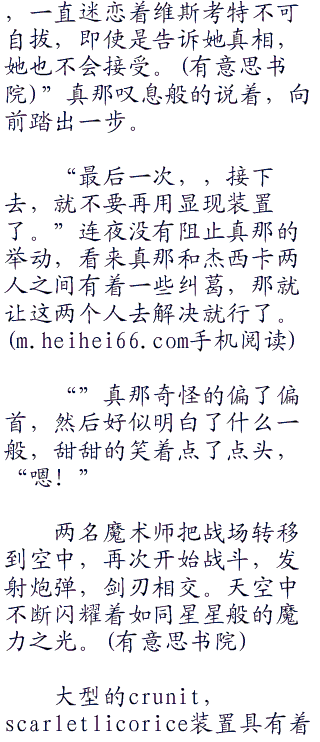 “啊哈!真那!真那!崇宫真那那那?怎样?怎么样?我的scarletlicorice?这样我就不会输了。不会输给你。不会输给你!”眼前这个已经满身是伤的少女杰西卡,边说边痴痴地笑着。