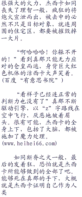 此刻的杰西卡,脸上带着狰狞的表情,驾御着一台浴血重生的鲜红机体。大树一般的二门炮身,形似战车的笨重样式,虽然带来了十足的威力,但是却需要驾驶的魔术师付出更为高额的代价。