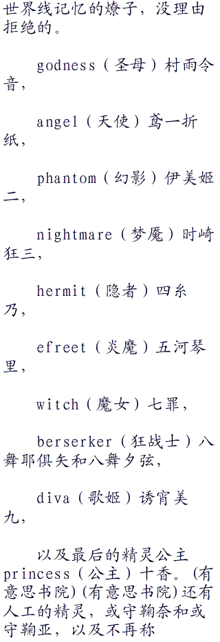 过去在ast的生活,日下部燎子会在没有任务的时候,带着一群魔术师的部下出来放松精神,泡温泉,或是蒸桑拿什么的,嬉笑玩乐的时候,倒也可以忘了自己的忧愁所在。不过,对于燎子这个性格大咧咧的大龄御姐来说,也的确没有什么太多的烦恼。