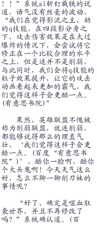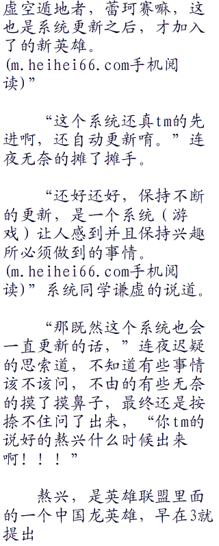 “因为您的召唤师等级提升了啊,而且因为已经成功完成了三个世界的缘故,被认定为是合格的召唤师了,所以有些资料有所废除,有些东西有所更新。”无限lol系统同学倒是在这种方面解释得兢兢业业,“况且既然是‘无限lol系统’,这个系统也是不断在更新的啊!您之前不是以沙漠皇帝,阿兹尔为媒介,召唤出了恕瑞玛荒漠之上的虚空怪兽