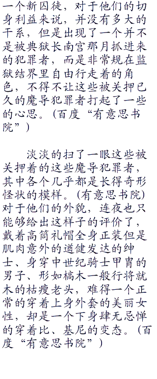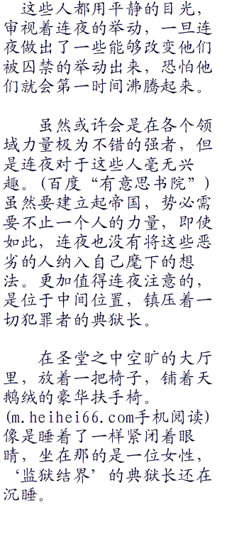 关押在这里面的犯人任何一个逃出去恐怕都会让整个世界都不得安宁,不过在着这个监狱之中,在着这重重禁制之下,被限制了的他们只不过是一群普通人罢了。