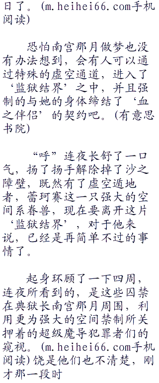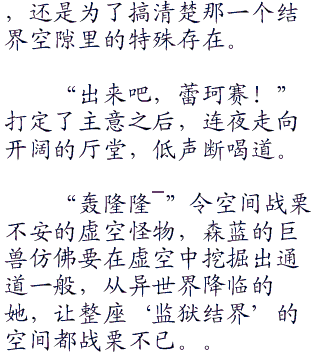 这就是连夜缔结了南宫那月这第一个‘血之伴侣’之后的情况,因为南宫那月是掌握空间魔力的魔女,以她的血液为灵媒,理所当然的召唤出了具有空间系能力的眷兽。虚空遁地者,蕾珂赛。