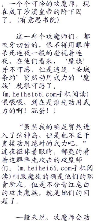 实际上,黄沙士兵们,已经对这些弦神岛警备队的攻魔师们留手不少了,因为他们的皇帝陛下有所指令,并不能杀死这些攻魔师。