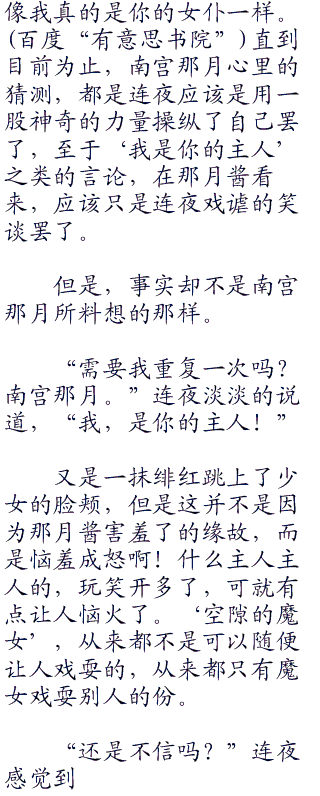 而且说起了连夜的不平凡之处,,南宫那月不由得俏脸一红。因为,自己刚才,在连夜的言语影响下,所做的事情,实在是太过羞耻了,让南宫那月的芳心不由得为此波澜不已。