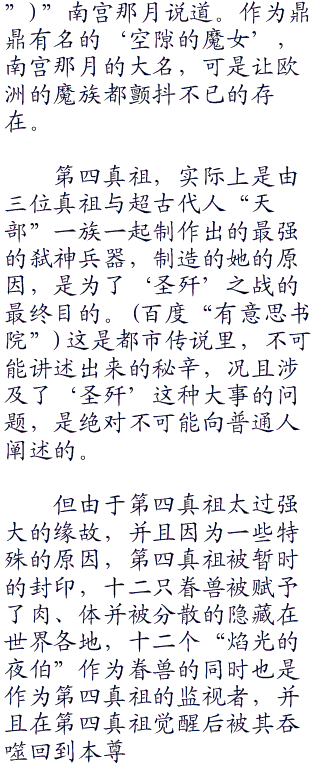 关于第四真祖出现并造成的破坏,有很多说法证明了第四真祖存在的真实性,不久前罗马的