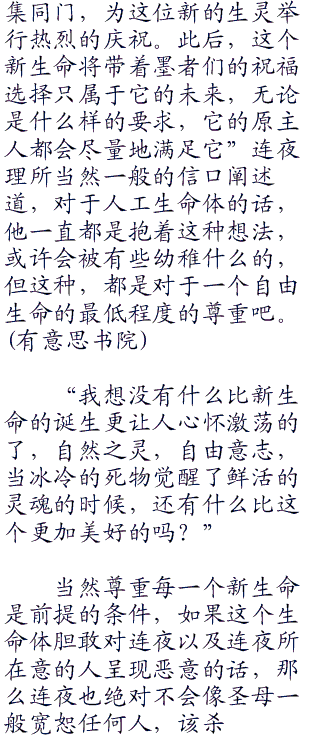 虽然从结果上而言,这是一个完美的仪式,获得了最完美的结果,成功制造出了最强的弑神兵器,第四真祖。但是其过程,在连夜看来的话,未免也太过残忍,太过忽略了作为第四真祖素体本身的意志了。