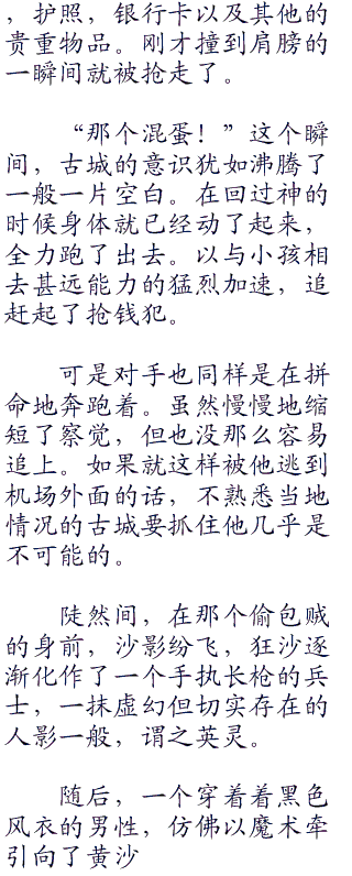 “嘛,因为是外国呢话说,在这儿我们才是外国人吧”古城一边拖着两人份的行礼,一边以童音吐槽着。
