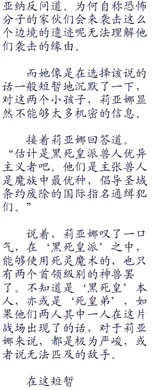 这让他回想起了在野营“零零零”地里进行警备工作的卡鲁索他们的森严气氛。这个遗迹被人盯上这种事最初就知道了,而且这个戒严的程度盯上这里的肯定不是一般的盗墓贼,很有可能是和着莉亚娜小姐一样子的强大的魔族!