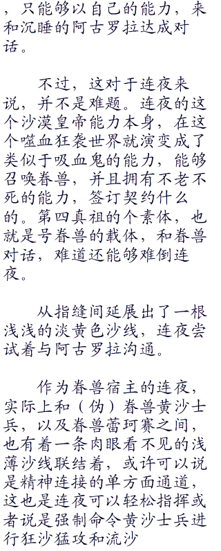 “总之应该是很快了,就连第号都已经苏醒了的情况下,‘焰光的盛宴’,应该也会随之开启了吧。”南宫那月白了一眼依旧一副轻松作态的连夜,有自信的确是一件好事,但是太过轻敌的话,可就不是什么值得称道的做法了。“‘焰光的盛宴’之中,持有第四真祖素体的家伙,都会加入这场战斗。就连第三真祖、第二真祖的嫡系、旁系,甚至有可能是真祖本身都会加入其中哦,还有‘天部’的那群古代人,指不定也会来观察一下他们的技术成果如何,所以,不管怎么说,还是多注意一些来得好。”