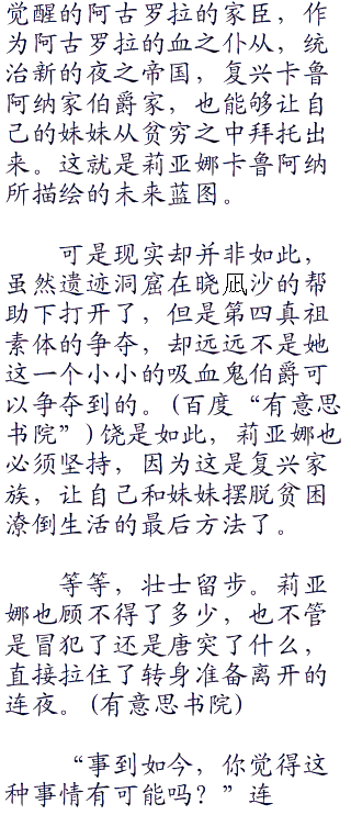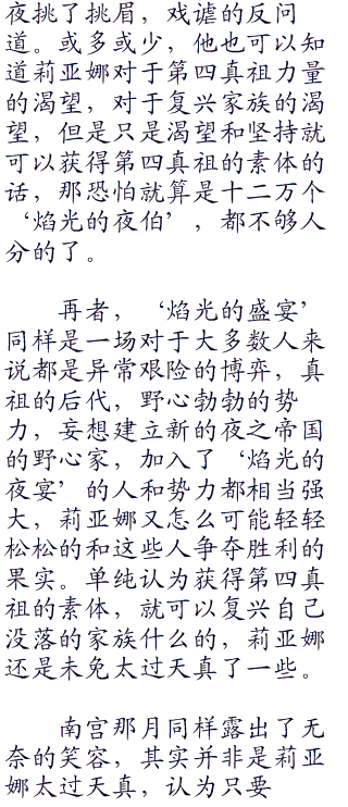 别人的‘焰光的盛宴’,是将手下的‘焰光的夜伯’当做真祖,自身则是真祖的血之仆从,当然,性情天真淳朴的‘焰光的夜伯’,却往往是被那些所谓的‘血之仆从’挟持并且制衡,而在连夜这边的话,则是在一开始地位就逆转了过来。对于连夜来说,阿古罗拉能够为他提供的不老不死力量,充其量也就只是‘锦上添花’的福利罢了,整个第四真祖,更让连夜感兴趣的,倒不如说是阿古罗拉这个小萝莉本身。