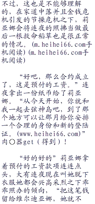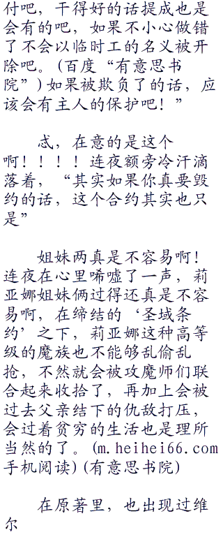 莉亚娜低下头沉默了许久,内心应该是在天人交加的斗争着,踟蹰了很长一段时间之后,莉亚娜然后诚惶诚恐的看着连夜,澄澈的眼睛仿佛受伤的小鹿一般,“呐,主人,签订合同之后,工资会按时交
