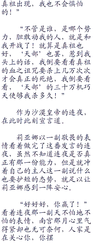 这种鬼畜的,不合理的,反常的,黑暗向的合同条款一定是没有人会签订的吧!连夜是这么想的,所以才说只有经历了这一层考核的人,才能够成为沙漠皇帝的衷心下仆。