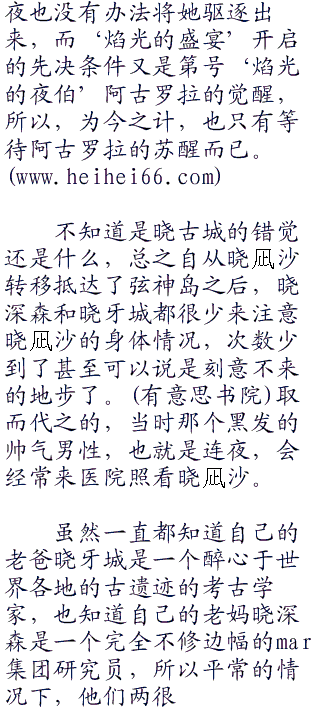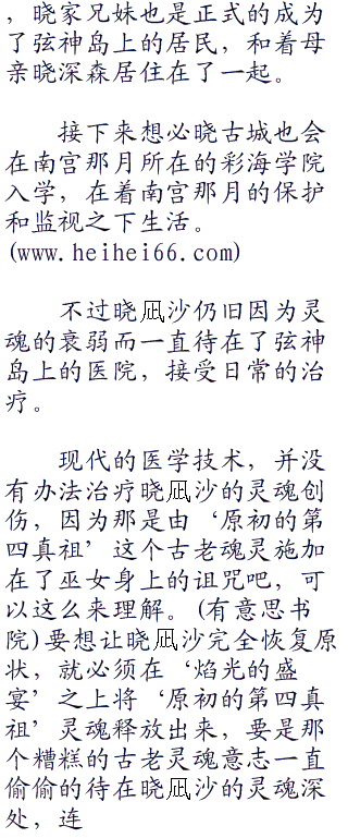 因为晓凪沙的灵魂同‘原初的第四真祖’的古老魂灵有所接触,或是有些受到影响、留下来印记什么的,导致本来就娇弱的身体一直持续性的虚弱,因此晓古城和晓凪沙都被晓牙城打包丢给了弦神岛来管理,也就是让南宫那月来处置,只有在最新科技的弦神岛之上,晓凪沙才能够接收到更好的治疗。