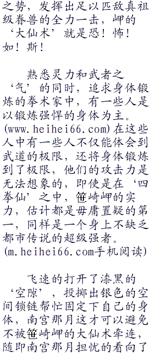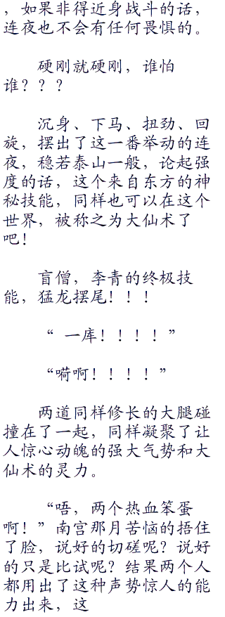 不管南宫那月怎么言语,热血上头了的笨蛋,总是有很多的,兴奋起来了的笹崎岬,就算是动用强大的仙术来进行所谓的拳术‘切磋’,也是很正常的情况。