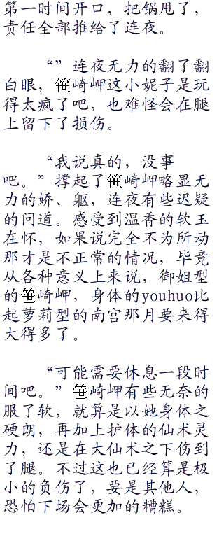 话虽如此,在看似毫发无损的情况下,连夜的腿部的肿痛,就只有连夜自己才清楚了。