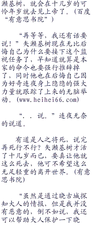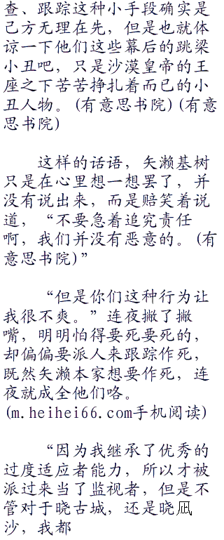 “我会把跟踪晓古城的事情交代出来的。”矢濑基树无奈的苦笑道,就算是被连夜当做了一个微不足道的屁来看待,他也无从与之抗争。