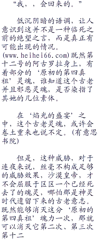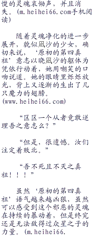 即使是神灵的时代遗留下来的强大并且邪恶的灵魂,但是毕竟也已经经过数万年的变迁,再加上再怎么说,也只不过是十二分之一的魂力罢了,在专精驱逐、净化、治愈的奶妈索拉卡的神力之下,‘原初的第四真祖’根本没有办法继续像附骨之疽那样残留附着在晓凪沙的魂灵之上,而是被迫在星辰的光辉之下发出一声声令人心底发