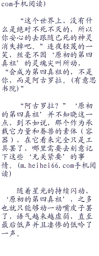 在圣洁的星河银辉之下,‘原初的第四真祖’,这个不知缘何而产生的,似乎是很久以前的神灵陨落之后而产生的魂灵,开始逐渐的消散,一丝一厘的。