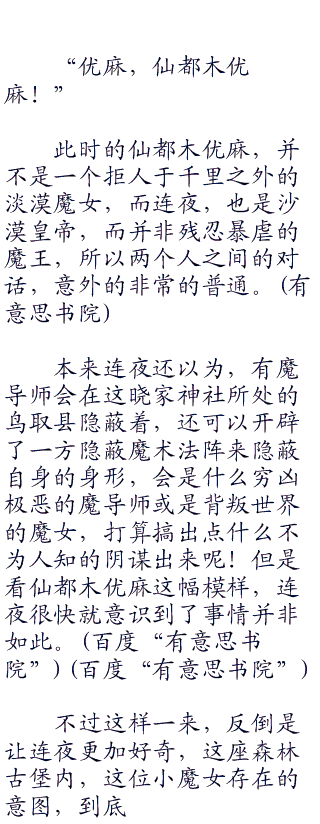 仙都木优麻才刚刚开始翻阅一本厚重的编号为的魔导书,理论上,按照图书馆lco的馆藏魔导书籍来看,编号从的魔导书,其间所包含的繁琐魔术知识是越来越困难的。