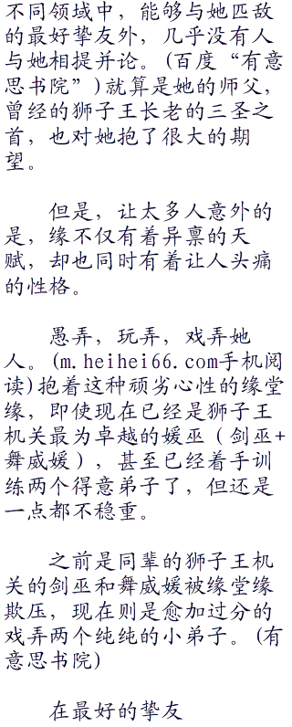 其她的同辈,仅仅只是在剑巫,或者是舞威媛单方面的能力发展就受到了很大的困难。可她缘堂缘却轻松的掌握了魔术,幻术,咒术,近战,远攻,暗杀,诅咒的所有项目。