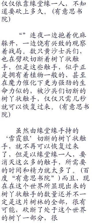 这树丫状触手的等级完全不同。这般强大的使魔,已经超越了人类能够役使的等级,是足以匹敌吸血鬼眷兽的怪物。如果不是不老不死的吸血鬼,召唤这样的怪物的话,施术者恐怕当场就会因为生命力的枯竭而殒命。