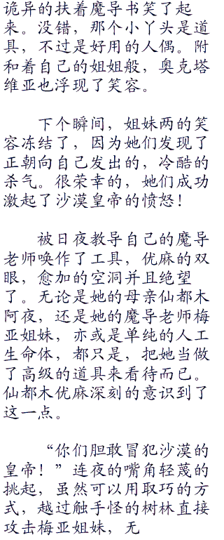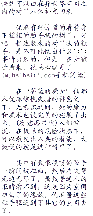 血染的魔法阵阵图之中,伸出了一只只粗壮的树丫状触手,绵延不绝。话说回来,魔法少女,为什么就一定要和触手怪牵扯上啊!