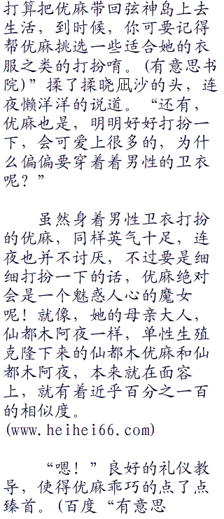 而且,除了有些男子气概之外,优麻酱给晓凪沙留下更为深刻的一点,则是她有些奇妙的走动和出现方式,时间不定,而且地点也不定,,仿佛就跟行踪不定的魔女一样。凪沙酱不知道的是,她这个猜测,刚好就和优麻的身份完美的wen合了,仙都木优麻,的的确确是一个天生的魔女,或者说,生而为魔女。