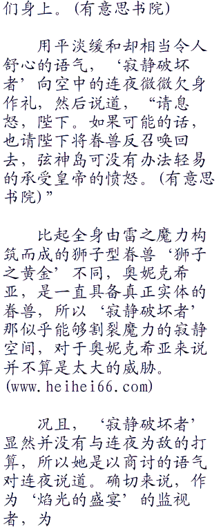 金色短发的铠甲少女以憎恶的眼神瞪着“寂静破坏者”以及那一头盘旋与空中的黑色巨龍,催动了作为眷兽容器的魔力,再一次将雷电chanrao在了身上,然后以雷光的速度极速飞向了别处,几个转眼之间就逃离开来了。