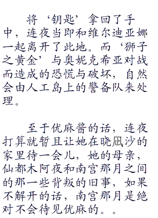 ‘无论是实力还是心计,那都不容小视’的,声名赫赫的狮子王机关三圣之首,闲古咏,本应该是冷面含霜的她,现在却正在给她的挚友作着推销的把戏,虽然期间有一些毒舌,不经意间就中伤了缘堂缘那令人残念的xiong部发育,但是从那淡漠毫无生色的语调之中,还是可以品味出闲古咏和缘堂缘两人之间真挚的友谊出来。