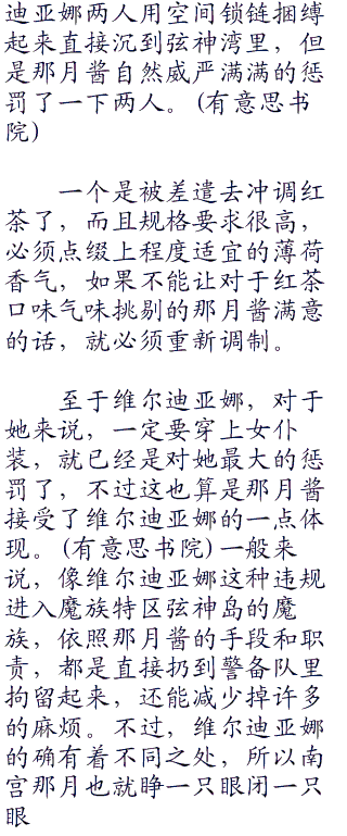 另一边,新科驾(嫁)到弦神岛上的维尔迪亚娜,在玩闹了一会儿之后,正在更换着衣服,她之前的服装,因为诸多的事故,早就显得破烂不堪了。