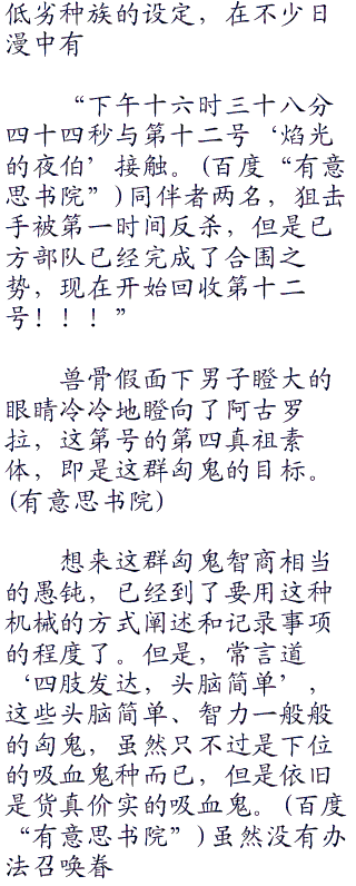 而是,欧洲涅拉普西自治领的匈鬼,最下等的吸血鬼,可以说根本没有办法和吸血鬼这种在常人的印象里是贵族的存在牵扯在一起。