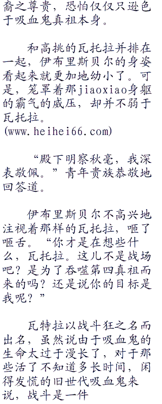 “原来如此是你吗,迪米托里叶瓦托拉”黑发褐肤的少年回头看向露出做作笑容的青年贵族,狰狞地眯细了金色的眼睛。虽然看起来年幼,但是魔族的强大,或者说是大多数强者的强大与否,绝对不是以外表的年纪来审视的。