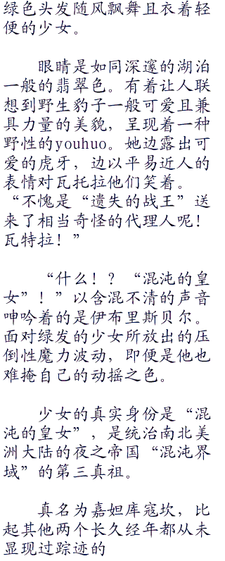 “不过,却是规模大的惊人的破烂啊。正因为如此,人类才有趣。”黑发的少年以轻松的语调如此轻蔑的说道,这句话说得好像他不是人似的。
