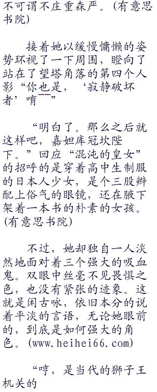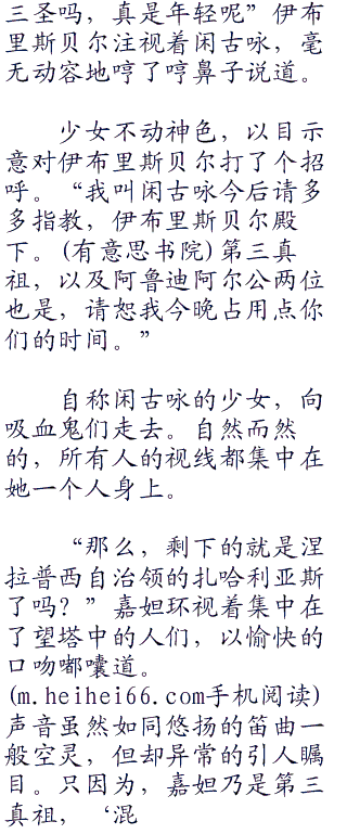 “吾不喜好那种夸张的称号。叫我嘉妲就行!”最强最古老的吸血鬼之“混沌的皇女”以无畏的笑脸说道,表面看起来相当的平易近人,令人无法看出她作为夜之帝国领袖的威严出来。