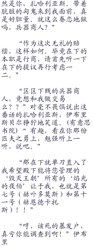 “迎接客人。必须要盛情款待一番呢!”缠上了豪华的深红长袍,伊布里斯贝尔走向城主之阁间。