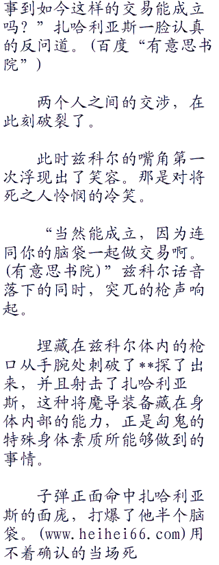 “为什么?”扎哈利亚斯轻蔑的笑道,仿佛觉得事到如今,匈鬼族长这一句言语,十分的愚钝一般。