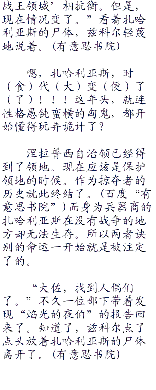 “原来如此。这确实很让人担心呢。”扎哈利亚斯平静地接受着兹科尔充满敌意的话语,他看似狡猾的小眼睛正眯成一条线反而是像是依然感到愉♂悦一般。真是愉悦啊