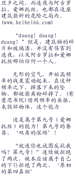 尚且没有被吸收了力量的,只有连夜身旁的阿古罗拉,爱娜托丝,以及掌握在第三真祖嘉妲库冠坎手里的其她2位‘焰光的夜伯’罢了。