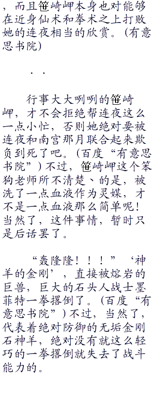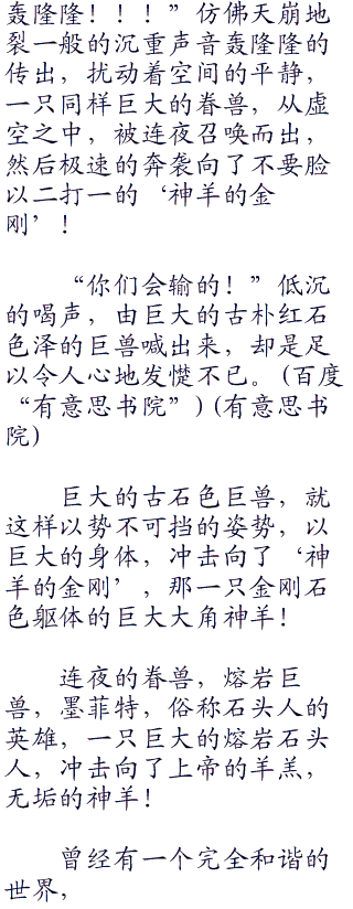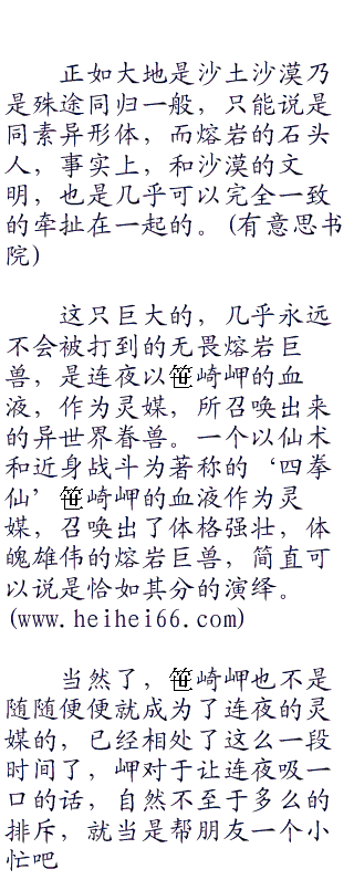 不足的部分,,就由连夜来补足好了。连夜很欣慰阿古罗拉和爱娜托丝两个少女展现出来的大无畏的反抗精神,以及那种为了保护自己,为了保持现在的生活,而不惜以下克上,反抗主人的‘原初的第四真祖’的强烈感情。