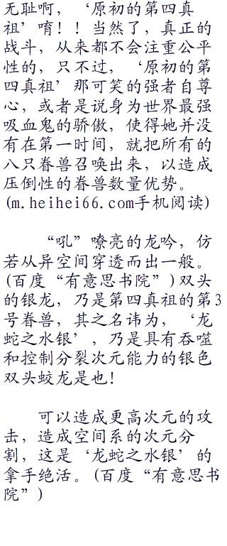 ‘原初的第四真祖’疾声喝道,她再一次使用后背之上额外的2片极光之翼,又召唤出了2只新的眷兽