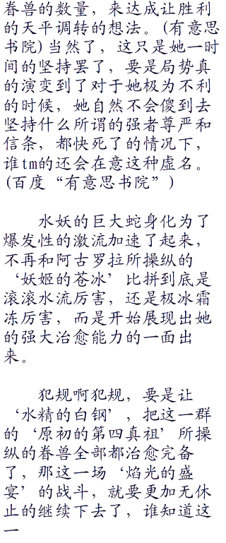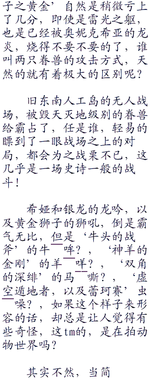 ‘狮子之黄金’倒是和它的老对手,‘黑龙公主,奥妮克希亚’战了个痛♂快,不过,很明显的,战局之中,落入了下风的是‘狮子之黄金’。