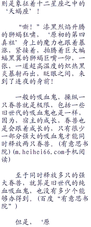 这样一来,有了那一只踩踏着灼热的烈焰蝎狮登上了战局,一下子又使得站在了‘原初的第四真祖’势力的眷兽,稍微的比站在了连夜和阿古罗拉、爱娜托丝一方的多上了一体。
