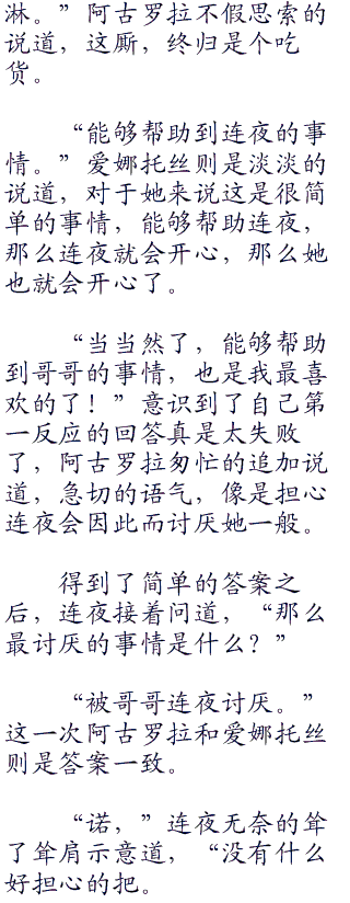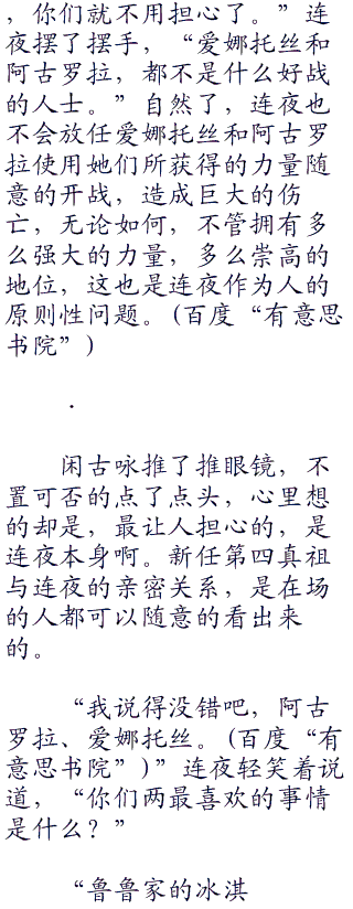 在‘夜摩的黑剑’从天而降,将所有的结界都破坏,并且在那之后,‘焰光的盛宴’落幕之后,他们三人就脱离观察者的立场,至于他们目前各自对于连夜以及阿古罗拉、爱娜托丝抱有何等的想法