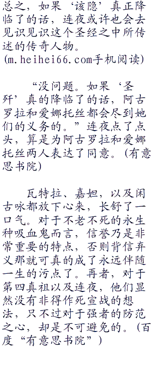 虽然不知道什么时候才是所谓的‘圣歼’开始,也就是魔族的始祖‘该隐’降临的时间点,但是连夜对于‘圣歼’,既没有非得要参加的义务感,也没有非得要避开的懦弱感,