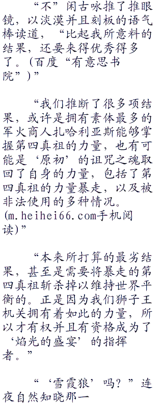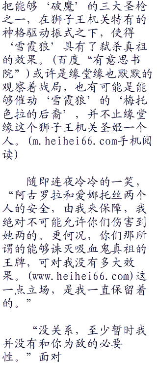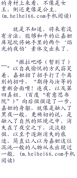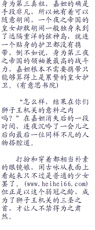 第三真祖,‘混沌的皇女’嘉妲库冠坎现在手里本应该还有两体‘焰光的夜伯’素体,也不知道这厮是玩闹心太重导致忘了带过来,还是说故意不想让新任的第四真祖,能够拥有全部的素体力量才刻意没有将掌握在‘混沌界域’里的两体‘焰光的夜伯’送到‘焰光的盛宴’之中。