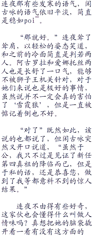 况且,连夜也没有非得和这个野性的森林女王针锋相对的必要性,虽然从嘉妲激aoxiao